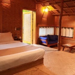 The Deluxe Cottage Double offers a perfect blend of comfort and nature, featuring a spacious king-size bed for double occupancy. Designed for a relaxing stay, the cottage comes with air conditioning, a private balcony with scenic views, and 24/7 power backup to ensure uninterrupted comfort. Guests can enjoy modern amenities like a LED TV with cable, a mini-fridge, and a tea/coffee setup for added convenience. The ensuite bathroom is equipped with hot and cold water along with branded toiletries, providing a refreshing and luxurious experience amidst nature.