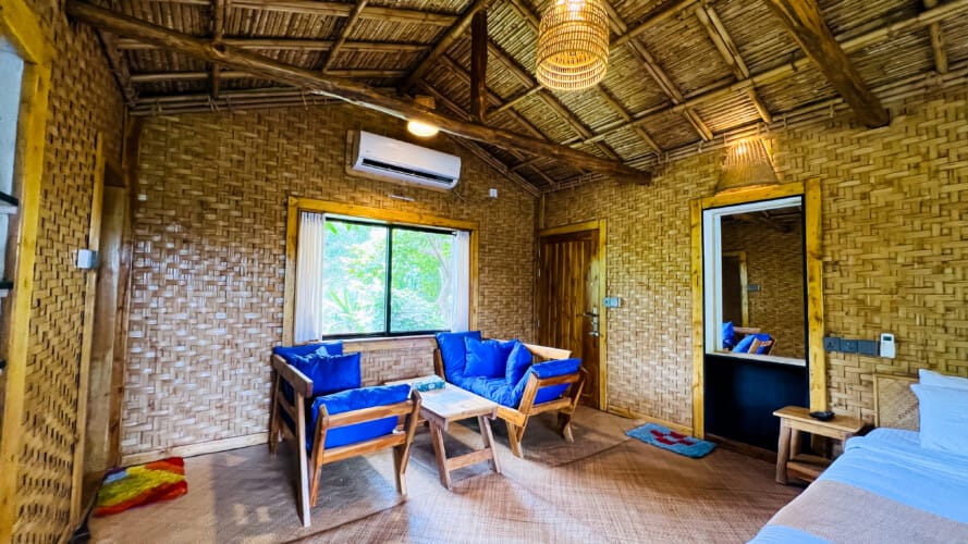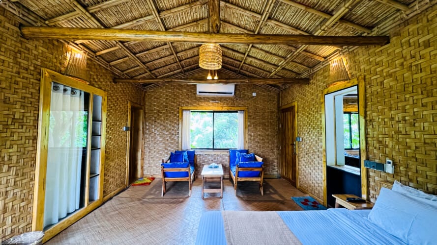 The Couple Cottage offers a perfect blend of comfort and nature, featuring a spacious king-size bed for double occupancy. Designed for a relaxing stay, the cottage comes with air conditioning, a private balcony with scenic views, and 24/7 power backup to ensure uninterrupted comfort. Guests can enjoy modern amenities like a LED TV with cable, a mini-fridge, and a tea/coffee setup for added convenience. The ensuited bathroom is equipped with hot and cold water along with branded toiletries, providing a refreshing and luxurious experience amidst nature.